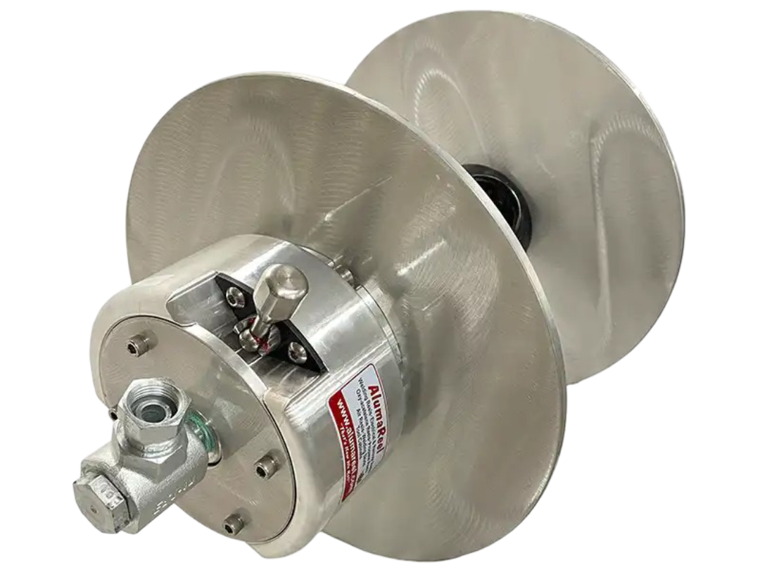 The AlumaReel Shielding/Inert Gas Welding Reel features direct hand crank rewind and an easy hose connect design.